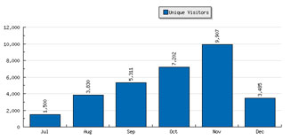 - Des stats de visites qui cr�vent toutes mes esp�rances. Suivant les outils d'analyse (d'ailleurs quelqu'un peut m'expliquer pourquoi y a un rapport de 1 � 4 bordel !!) on finit l'ann�e avec entre 10 000 et 45 000 visiteurs/mois.